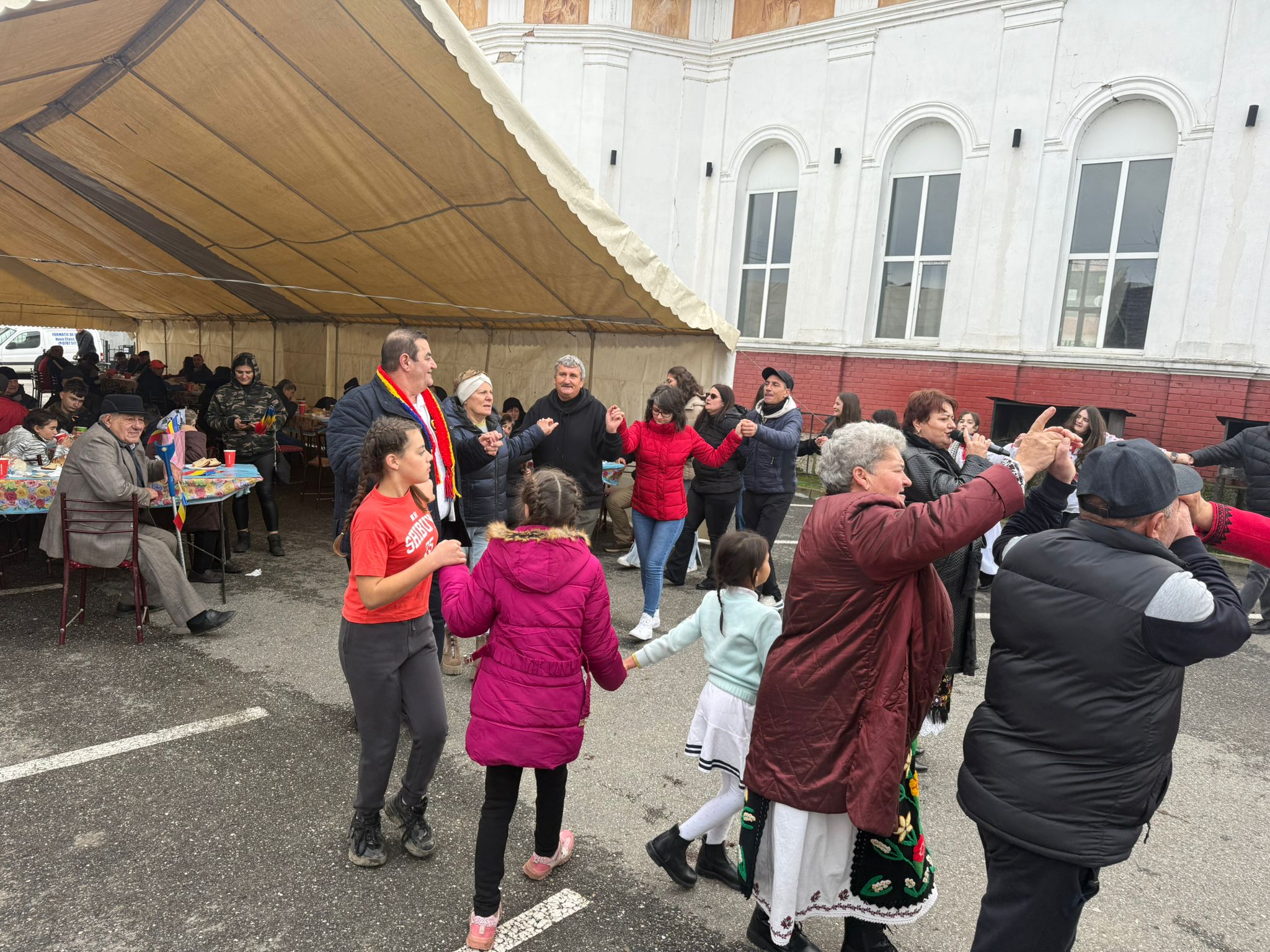 Am oferit locuitorilor mâncare tradițională, iar atmosfera a fost întregită de muzică, dansatori și frumoasele momente pregătite de copiii de la Școala Gimnazială Arcani.